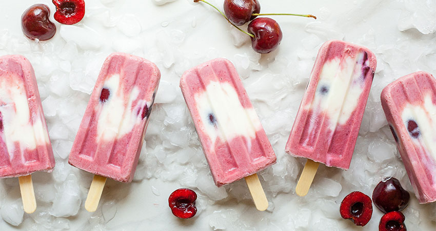 1. Make the lollies by whizzing each fruit separately in a blender, with 130ml of water and 4 teaspoons of sugar. Divide each type of blended fruit between four moulds, leaving a 1cm space at the top of each. Insert sticks and place in freezer.